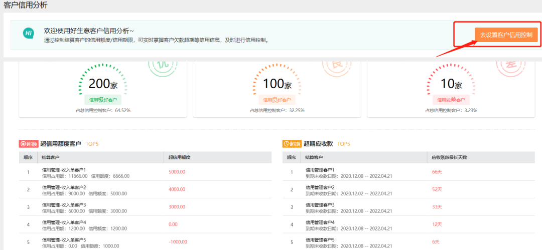 每个客户要进行信用额度控制,