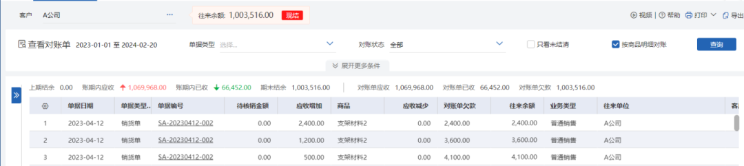 自动形成客户对账单、供应商对账单