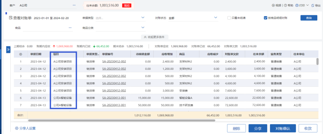5.项目多,与客户对账要按照项目对账