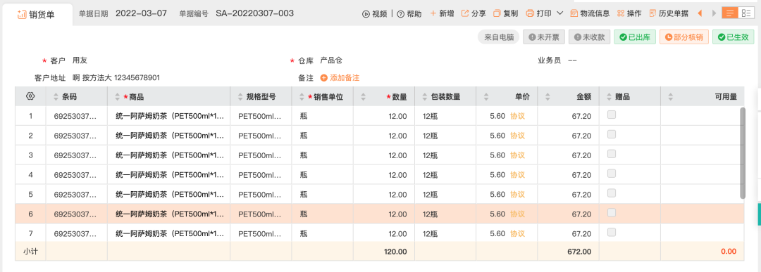 1.客户发货按销货单录入
